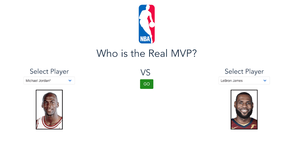 Using this data, we made a simple web application to show the top of the list and a feature to compare any two players. Ever wonder who is better between Allen Iverson and Steph Curry? Shaq and Joel Embiid? Scottie Pippen and Kawhi Leonard? (Steph, Shaq, and Kawhi according to our rankings...) The site lets you pick any two players and compare them. The metrics we tracked for each player were shown under their name and image.